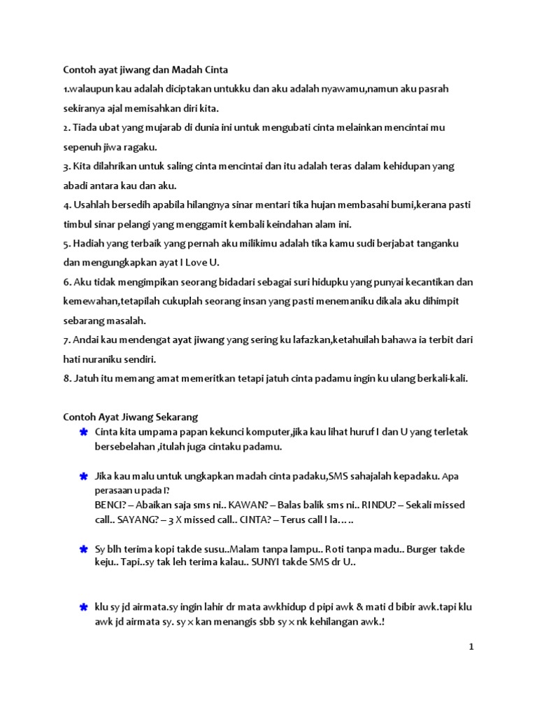 Contoh Ayat Jiwang Dan Madah Cinta Pdf